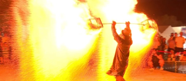 龙卓告诉记者,火壶表演是河南省国家级非遗的一种,热烈的火光与壶影相映成趣,呈现出“火树银花”般的效果,寓意“驱疾避祸,百家安宁”。