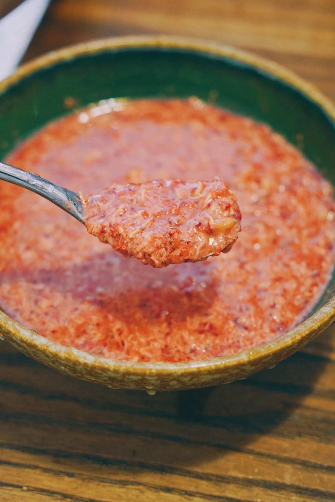 夏天卖爆的桂花冰酿,用冰镇的酒酿打底,撒上桂花,一勺下去凉丝丝的甜漫到舌尖。