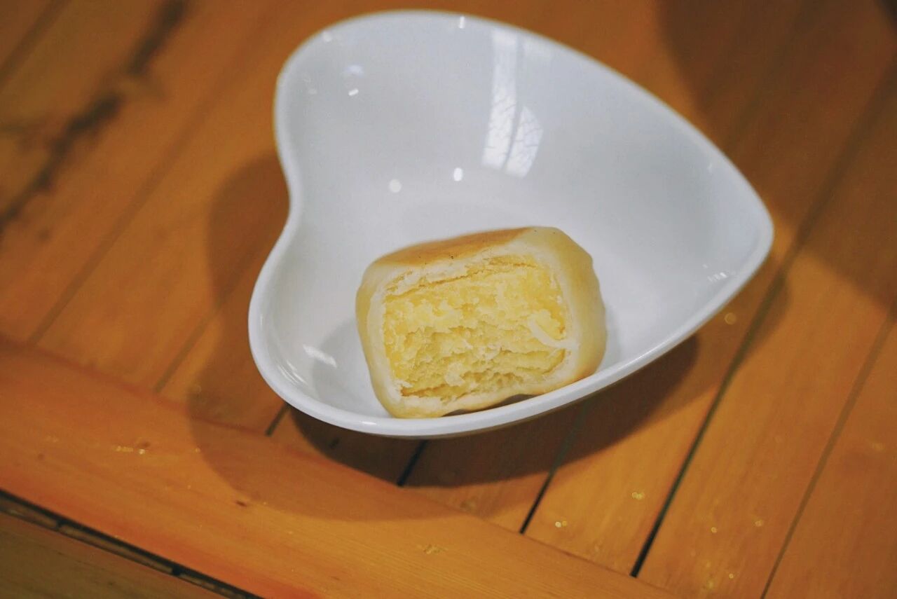 店里还有多种小吃,比如一口一个小惊喜的冰皮莲子饼,内馅除了宣莲,还加入了绿豆和一点银耳,软糯香甜。