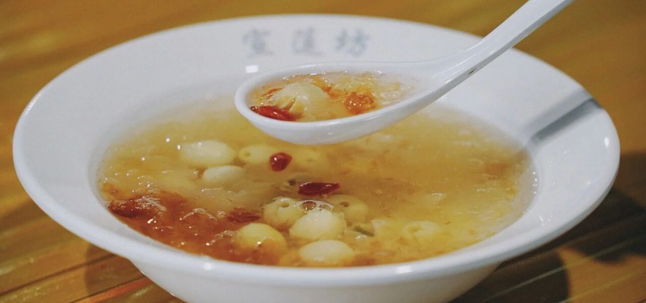 熬煮到银耳出胶、莲子变得粉糯。盛在白瓷碗里,银耳透亮,莲子饱满,入口是自然的清甜,没有杂味。