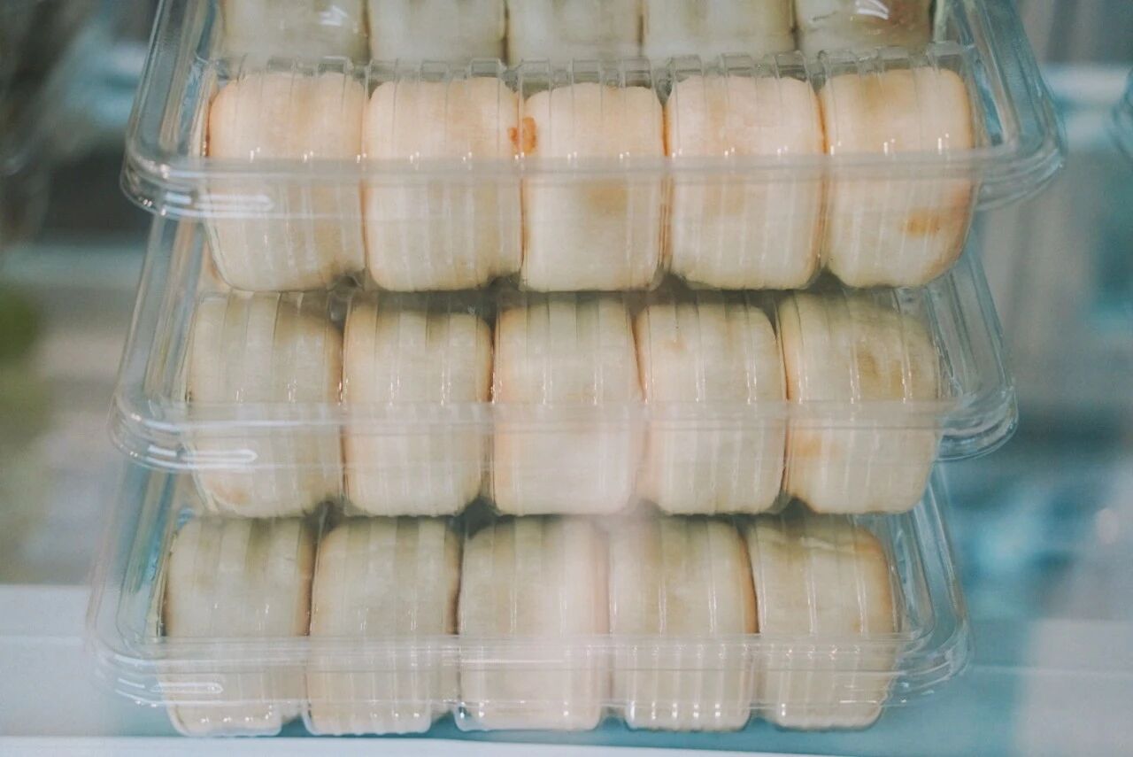 店里还有多种小吃,比如一口一个小惊喜的冰皮莲子饼,内馅除了宣莲,还加入了绿豆和一点银耳,软糯香甜。