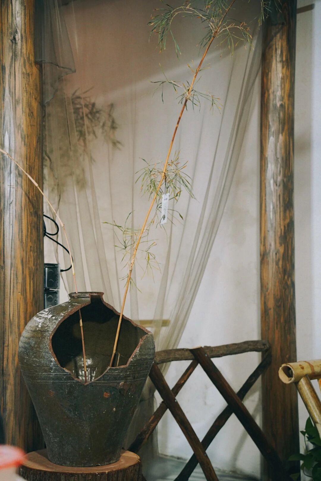 古色古香的竹制桌椅,竹椅带着自然的纹理,竹桌打磨得光滑温润,坐上去仿佛能触摸到岁月的质感。