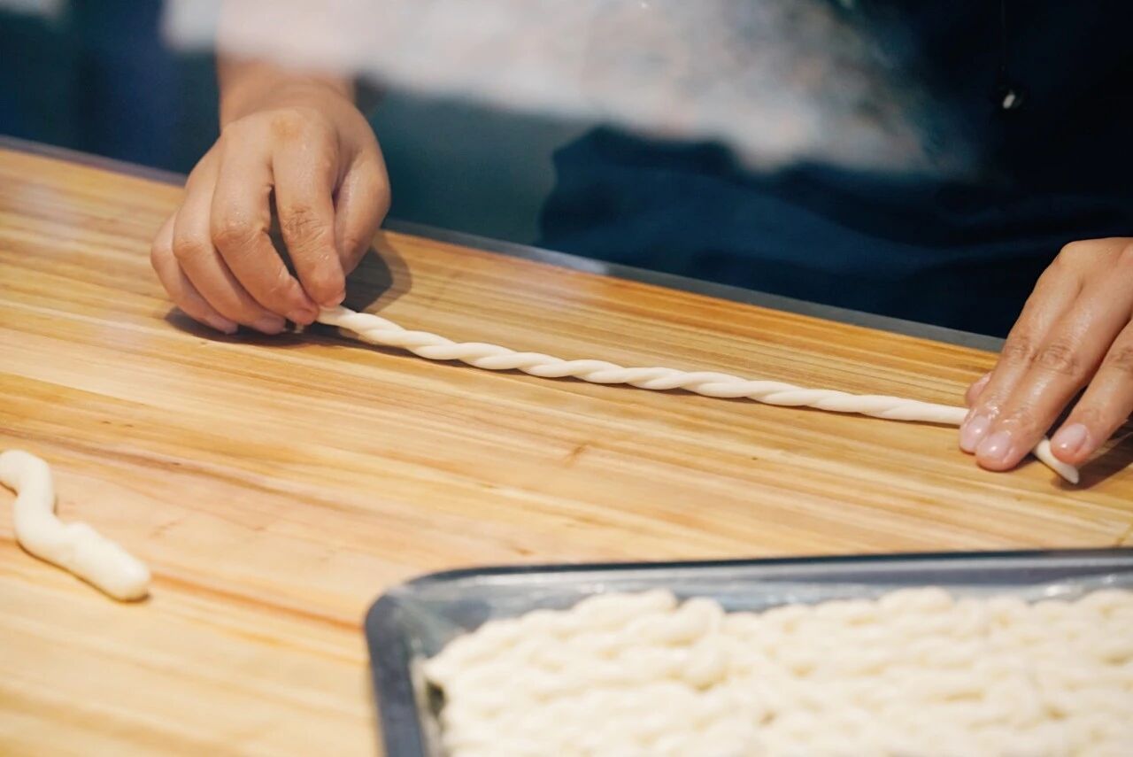 师傅们揉面时手臂带劲,面团在案板上“咚咚”响;拧花时双手翻飞,三股面条转着圈就缠出了匀整的螺旋纹。